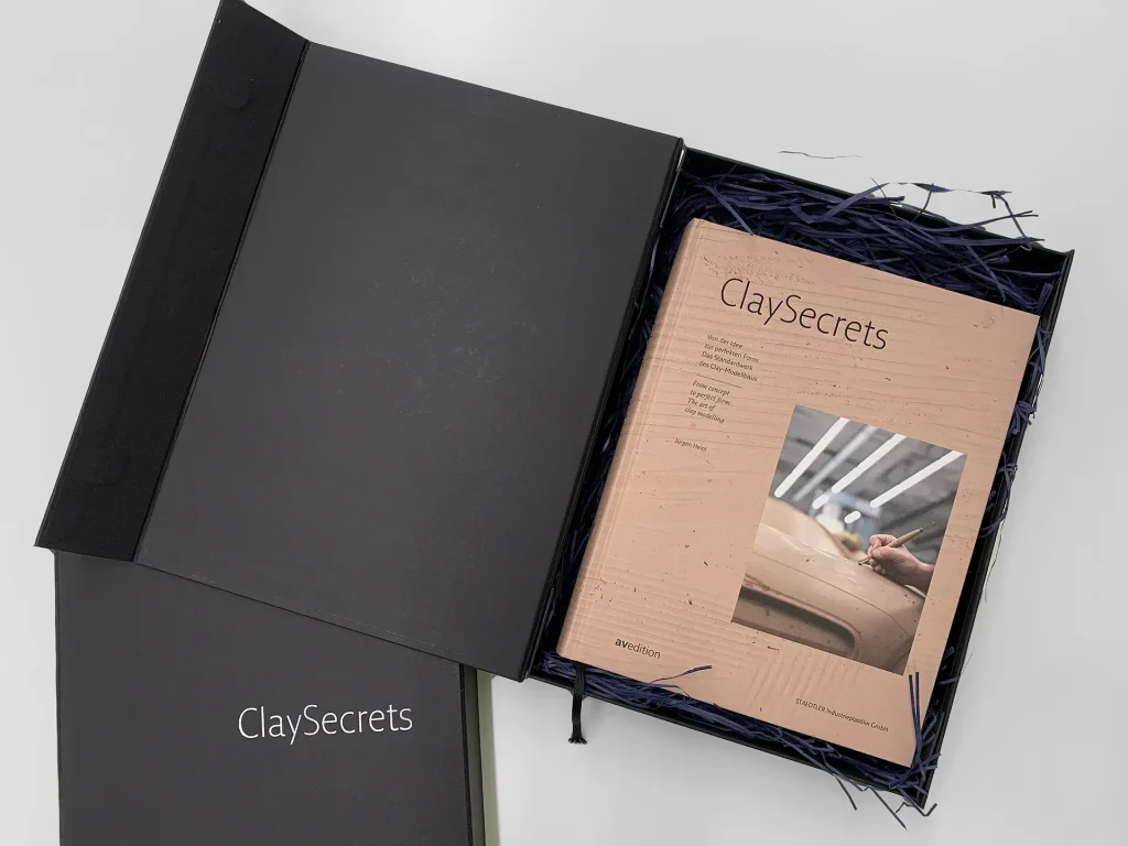 Nicht weniger grandios kommt das Buch daher. Haptisch ansprechend und in klar differenzierter Gestaltung weckt das Buch Interesse am Werkstoff und seiner Bedeutung für Industrie und Forschung. In einer schlichten und sehr hochwertigen Geschenkverpackung erreichte es seine ersten Leser aus Industrie und Lehre. Das Buch ClaySecrets beleuchtet Geschichte und Zukunft des Materials Clay, deckt ganz unerwartete Einsatzmöglichkeiten auf und gibt erstaunliche Einblicke in die Welt der Automobilindustrie.