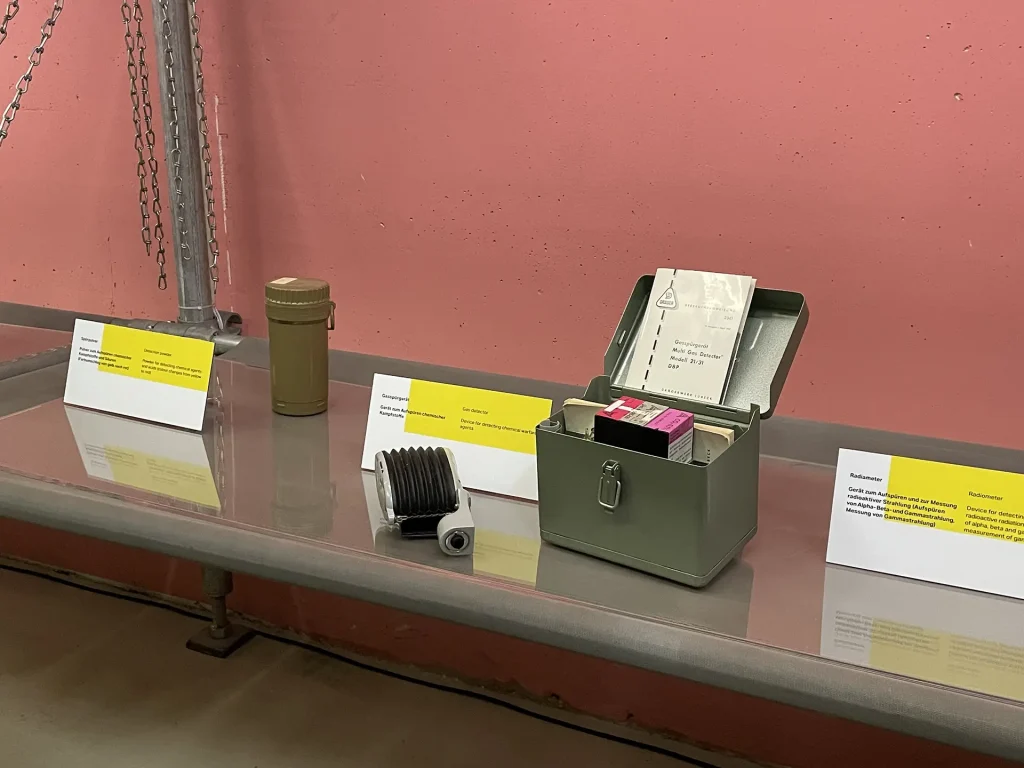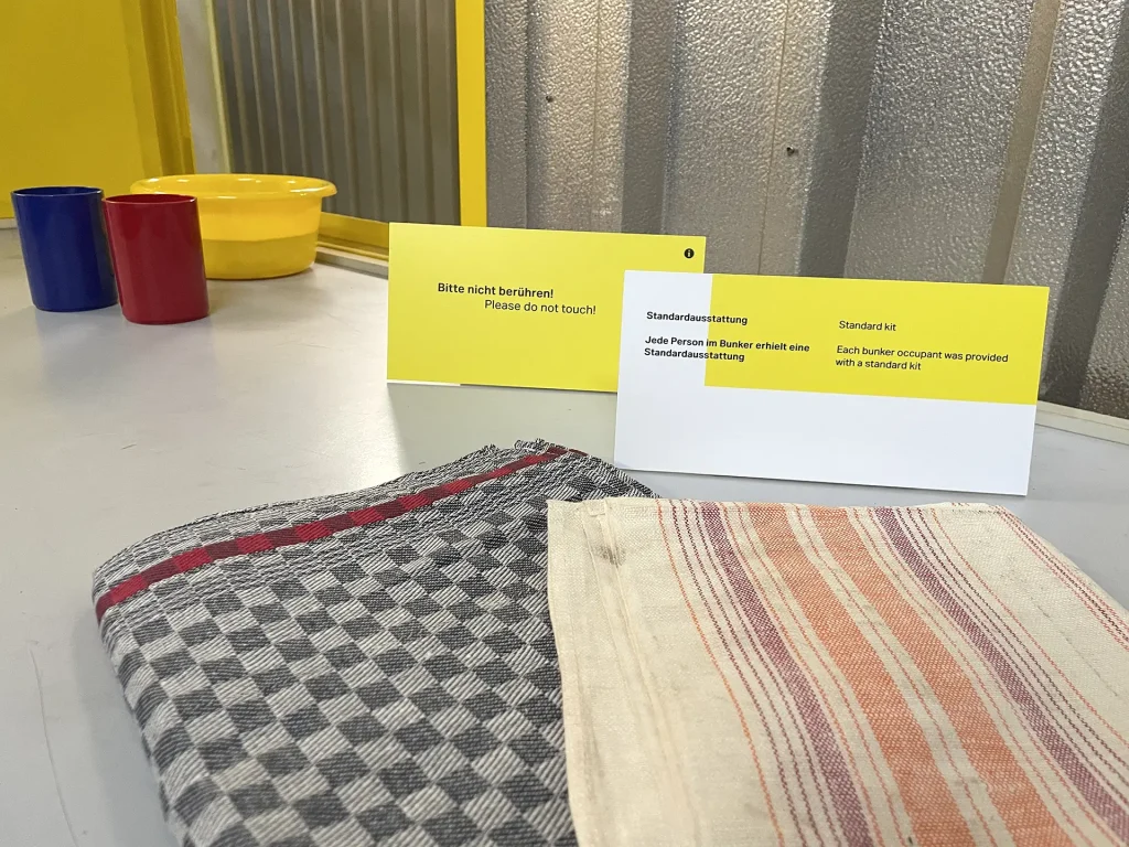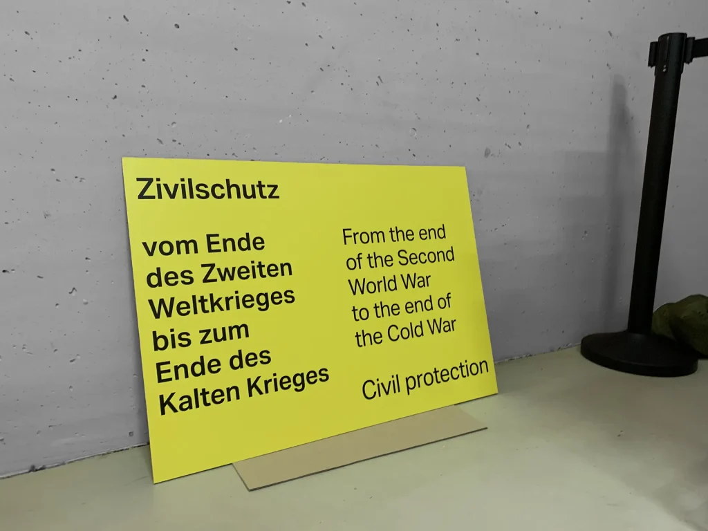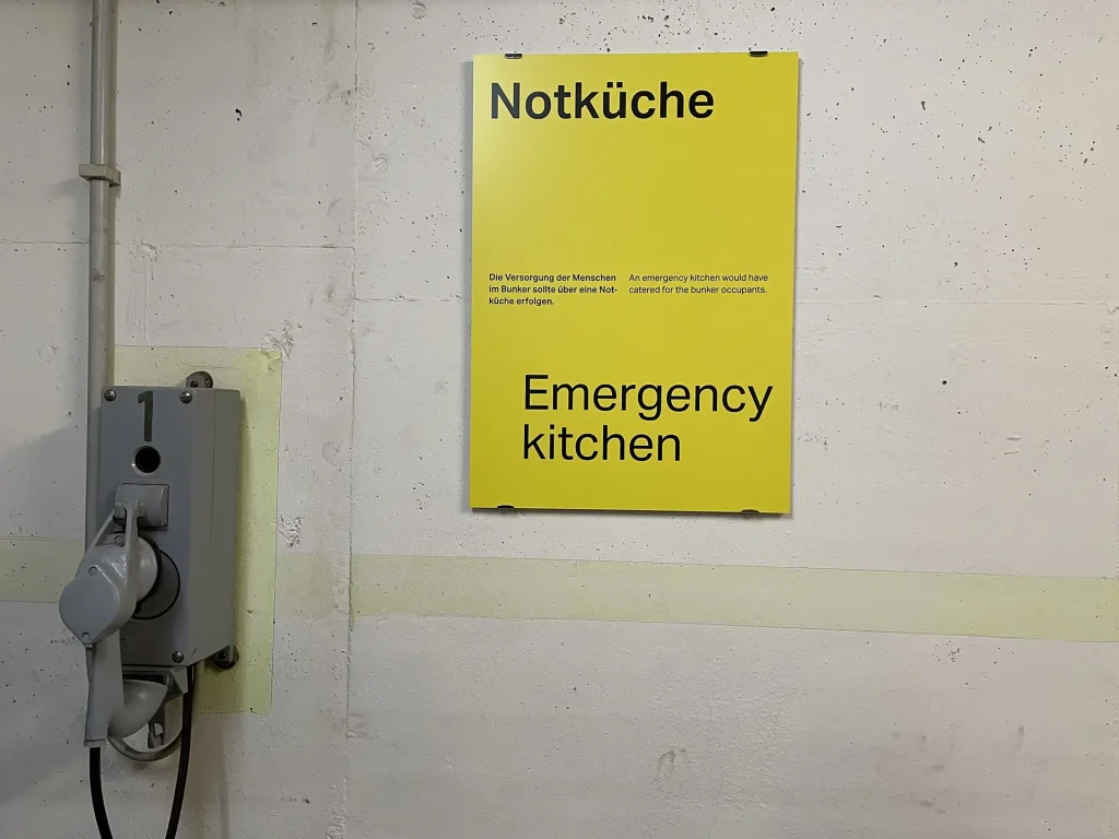 Nach dem Ende des Zweiten Weltkriegs und dem Abwurf zweier Atombomben auf Japan wurde die atomare Hochrüstung symptomatisch für den Kalten Krieg. Wie konnte die Bevölkerung vor dieser Bedrohung geschützt werden? Die Antwort darauf versuchte man mit dem Bau von Schutzbunkern zu geben. In Führungen kann man eben einen dieser Schutzorte besuchen, direkt unter dem Hauptbahnhof in Nürnberg. Mit dem Betreten des Bunkers begibt man sich auf eine Reise in die Zeit des Kalten Kriegs. Markelos hat die Aufgabe, die einzelnen Stationen der Frührungen den Besuchern zugänglich zu machen, ganz ohne großer musealer Aufarbeitung. Zurückhaltend und neutral, der historische Ort darf in seiner unmittelbaren Sprache für sich selbst sprechen. Die Besucher sind eingeladen, zu folgen und sollen nicht überfordert werden. Markelos greift die bauzeitlich gewählte Farbe gelb auf und führt die Besucher in klarer Typographie durch die Ausstellung. Die subtile Inszenierung durch den gezielten Einsatz von Licht ermöglicht den Besuchern einen leichten Zugang zu den doch sehr unterschiedlichen Ausstellungsstücken und trägt maßgeblich zu einer entspannten Atmosphäre bei.