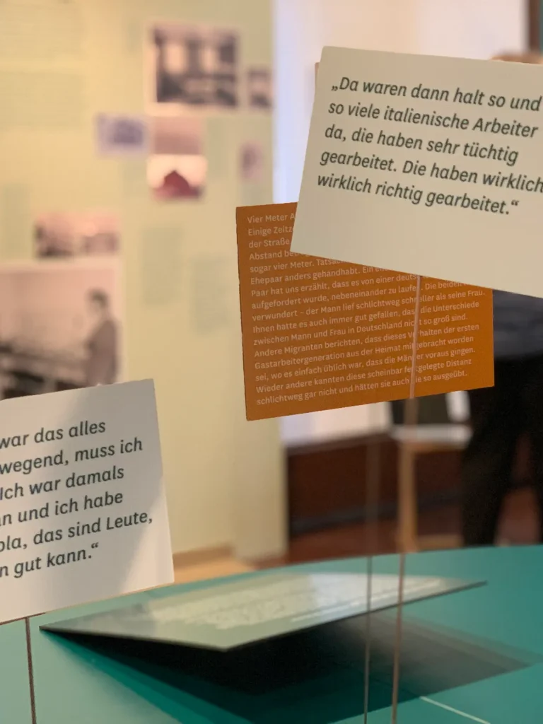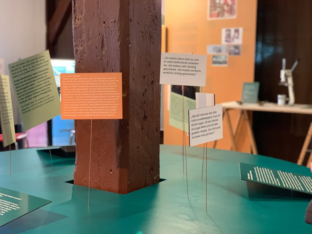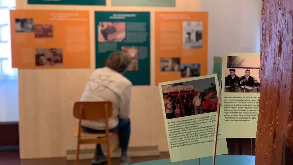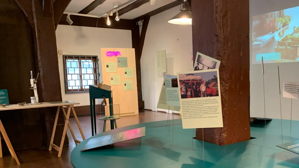 Parallel zur Ausstellung „Heimat ist da, wo man satt wird“, im Freilandmuseum zeigt das Reichsstadtmuseum im Ochsenhof in der Altstadt von Bad Windsheim die Ausstellung „Im Großen und Ganzen ist man eigentlich gut ausgekommen“. Hier kommen vor allem die Einwohner der Kleinstadt zu Wort. Sie begegneten den Migrantinnen und Migranten als Arbeitskollegen und Nachbarn – oder beim Besuch in neuen Cafés, Eisdielen und Restaurants, die sich zu festen Institutionen im Stadtleben entwickeln sollten.