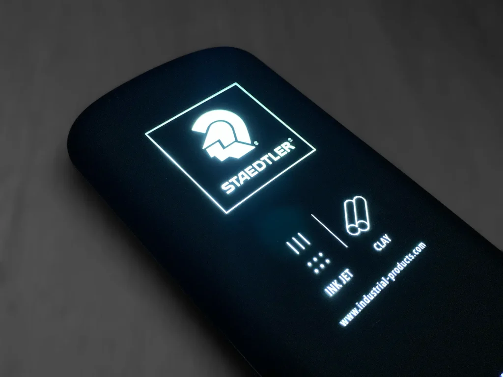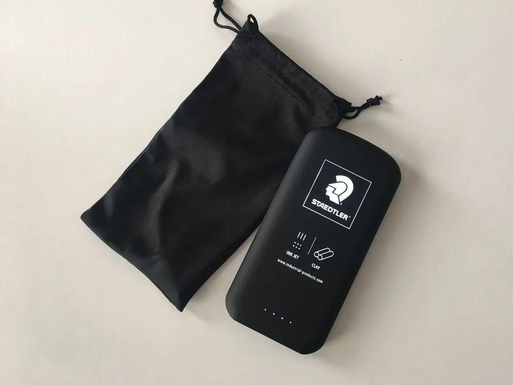 Gut zu wissen, immer eine mobile Energiestation dabei zu haben. Das begrüßte auch STAEDTLER Industrial Products. Die PowerBank mit filigranem Laserschnitt lässt bei Bewegung die Marke des Unternehmens erleuchten und zieht die Blicke auf sich. Im hübschen Stoffsäckchen ist es ein adäquates Präsent für die gehobenen Kunden.